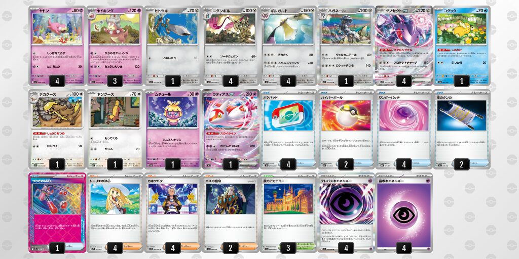 ゲノセクトで持って来れるニダンギル・ギルガルドが最大で8枚、内1枚は最低でも盤面に出すので実質7枚